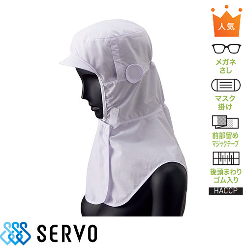 ◎仕様:眼鏡さし,マスク掛け,前部留めマジックテープ,後頭まわりゴム入り,HACCP対応