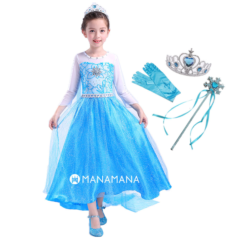 胸元の雪の結晶のビジューがポイントのライトブルーが輝きを放つアナと雪の女王のエルサデザインのドレス。 お花模様やキラキラ素材がお姫様気分を盛り上げます。 袖口のカッティングやバストラインの切り替えなど細かいディテールも本物に近い形に再現。 身頃、お袖部分は伸縮性があり、ラインストーンが贅沢に散りばめられています。 スカートはラメ糸とナイロンで編まれた透け感のあるチュールと、ライトブルーサテン生地の2重仕立て。 ウエスト部分はやや伸縮性あり。 取り外し可能なチュールドレーンは、流れるようなラインを描き気分はエルサそのもの。 着用はサイドファスナー付きでかぶり仕様。 やや短めのミディ着丈のためテーマパークやイベントハロウィンパレードなどのお出かけにぴったりです。 お誕生会などのパーティーや記念日、セレモニー、イベント、ハロウィン コスチューム クリスマスにもオススメです☆ ディズニーランド へのお出かけにも!! なりきりプリンセスで素敵な時間を♪ ※セット内容以外は付属しません |