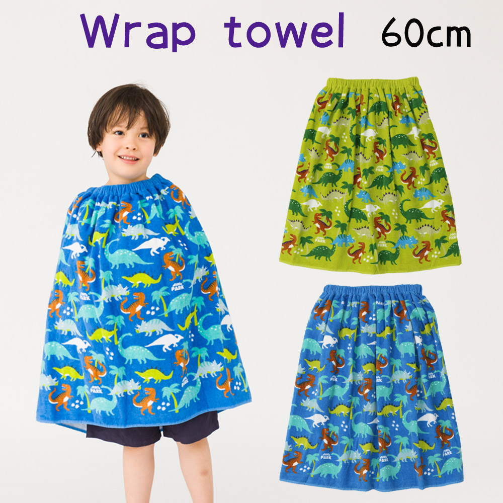 ラップタオル 巻きタオル 恐竜 ダイナソー 60cm丈 綿100% キッズ 子供用 タオル マキタオル ドレスタオル ゴム入り 男の子 プール スイミング