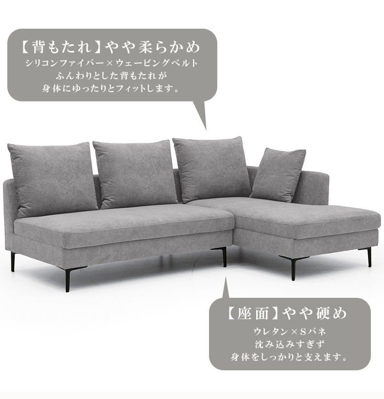 斜めに広がるアームを枕代わりにして寝転がりやすい硬さとなっています。