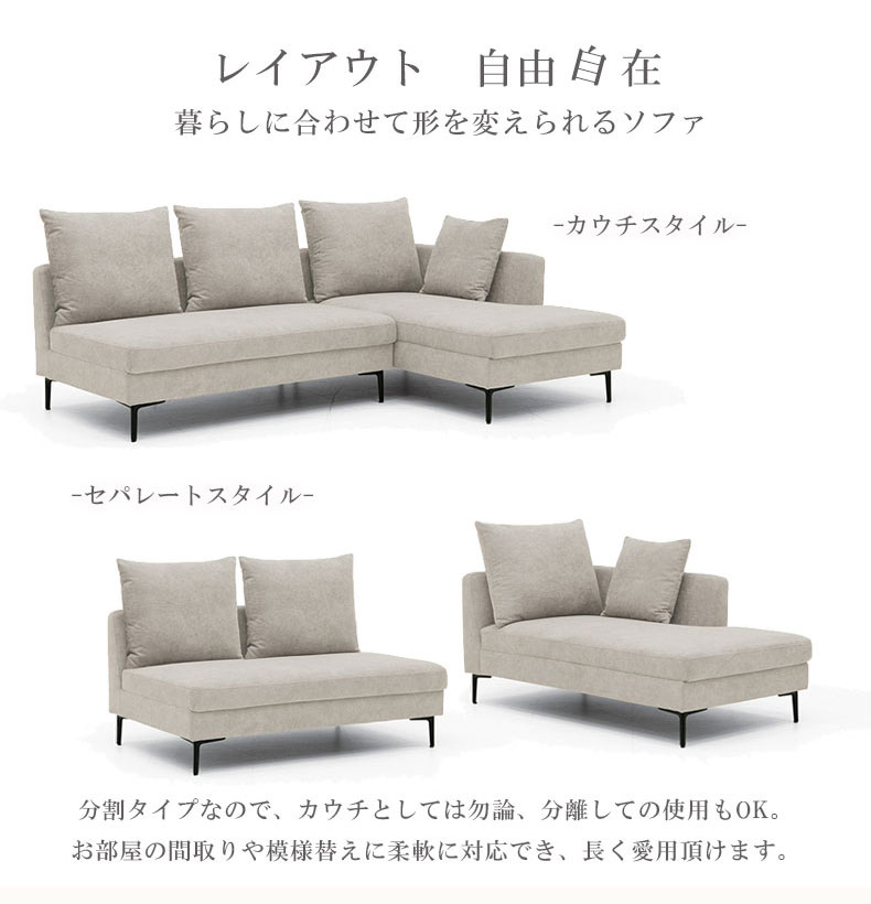 分割タイプなので、カウチとしてはもちろん分離してのご利用も可能です。