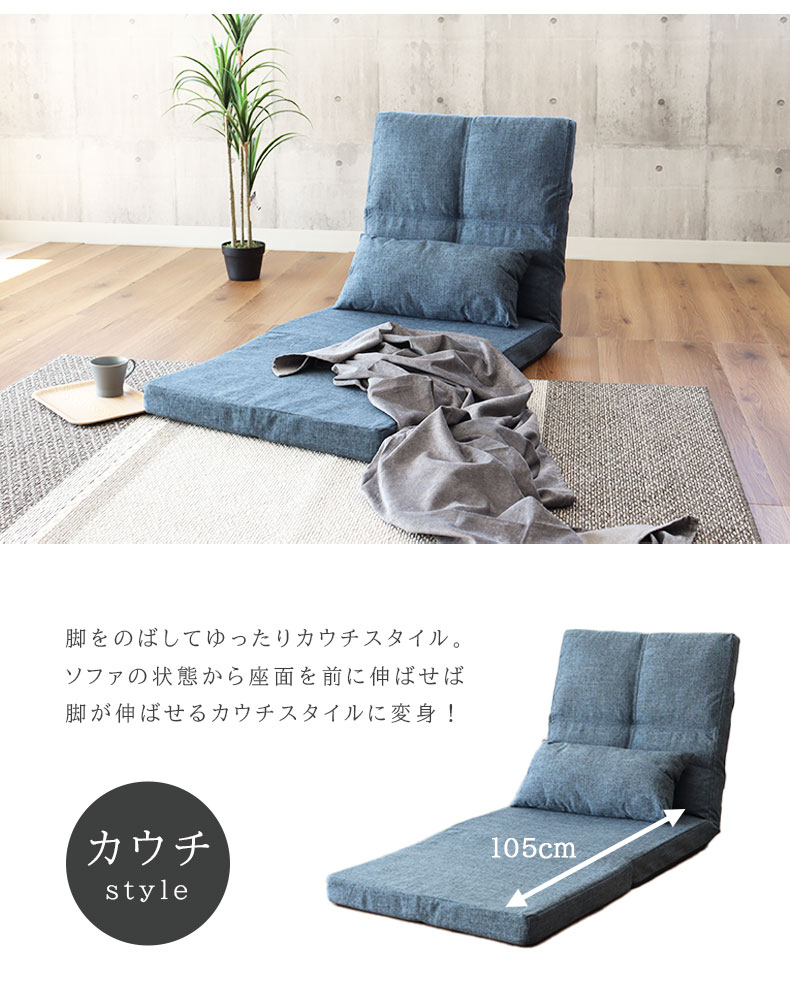 ソファの状態から座面を前に伸ばせば脚が伸ばせるカウチスタイルに変身。
