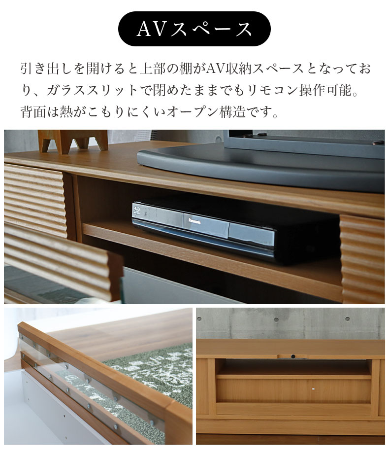 AV収納スペースはガラススリットで閉めたままでもリモコン操作可能。