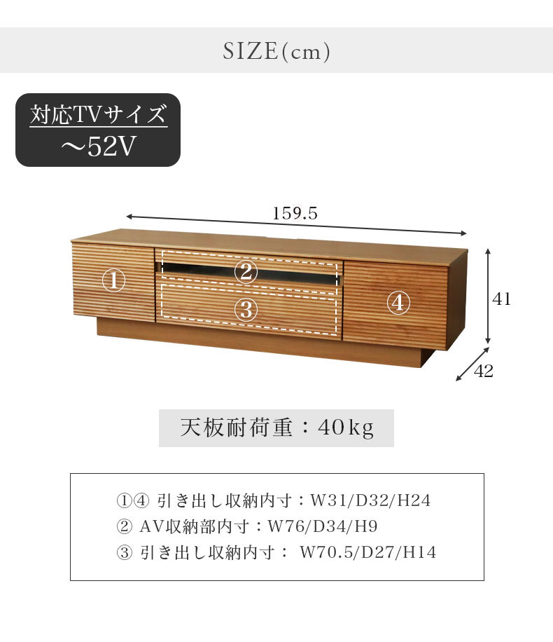 3杯の引き出し収納に、中央上段がAV機器スペースとなっており、