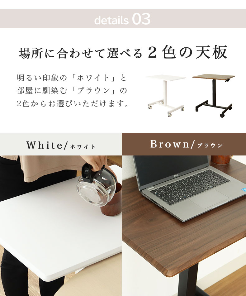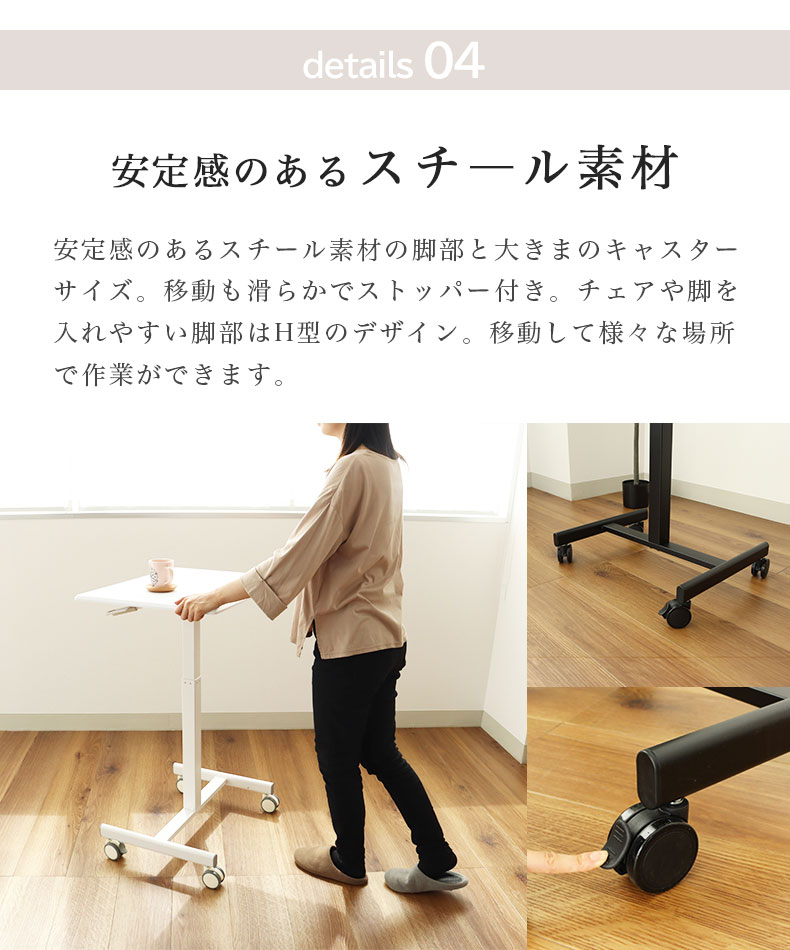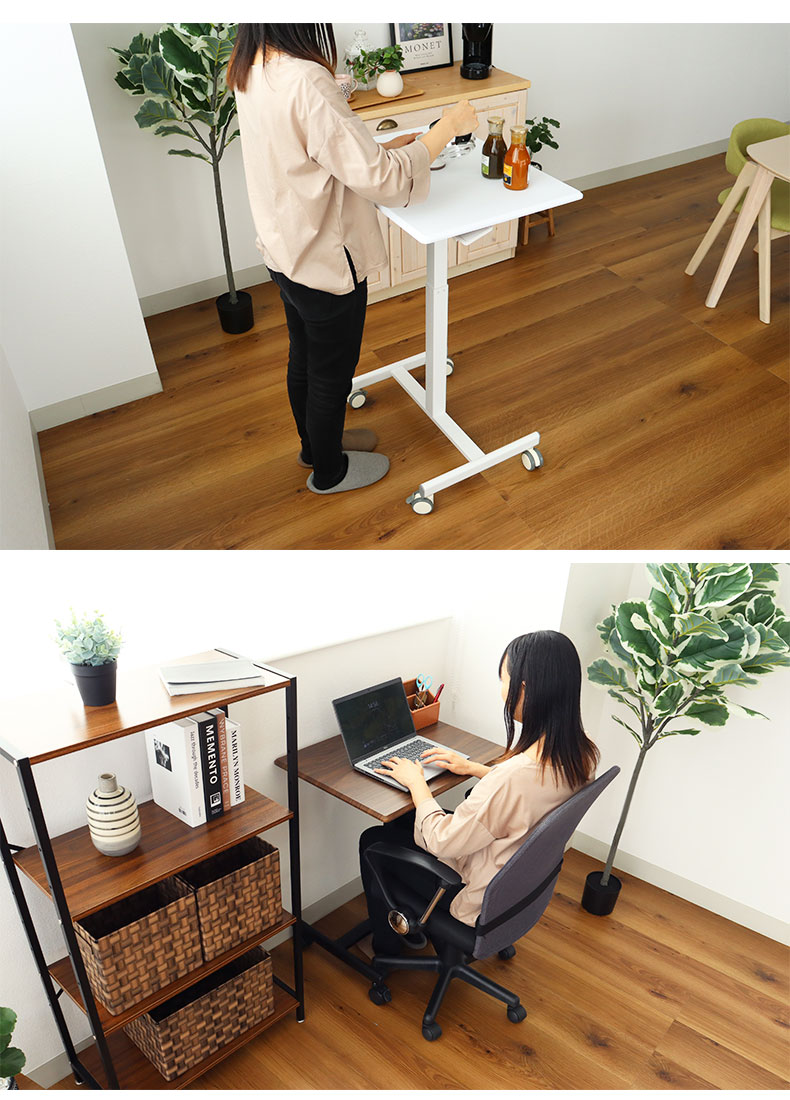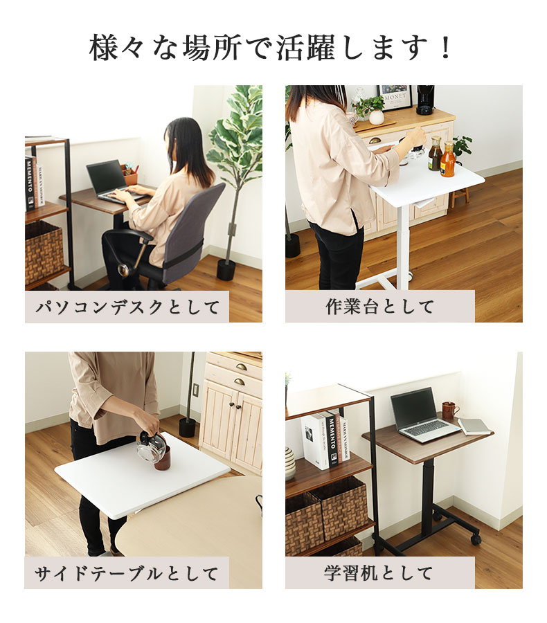 パソコンデスク、作業台、サイドテーブルとしてリビング、ダイニングキッチン、書斎にもキャスター付きで動かしやすく、家中で活躍。
