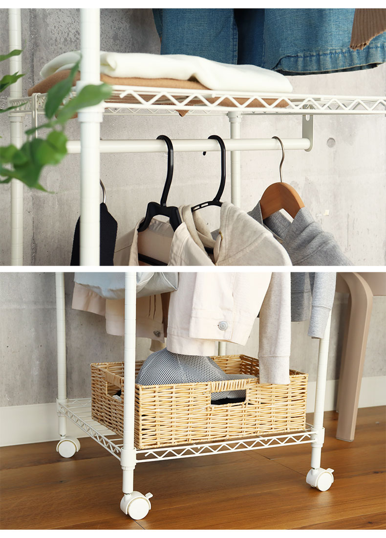ハンガーラックとして、玄関のワードローブとして使えます。