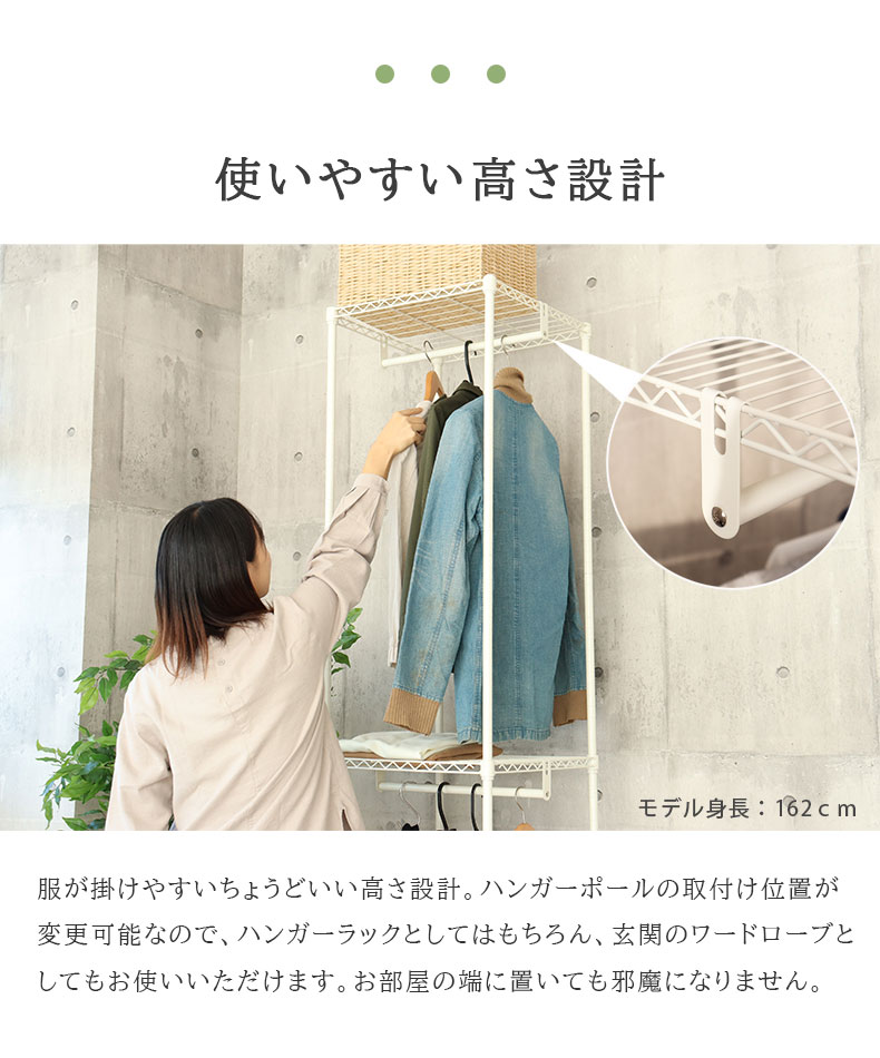 服が掛けやすいちょうどいい高さ設計。