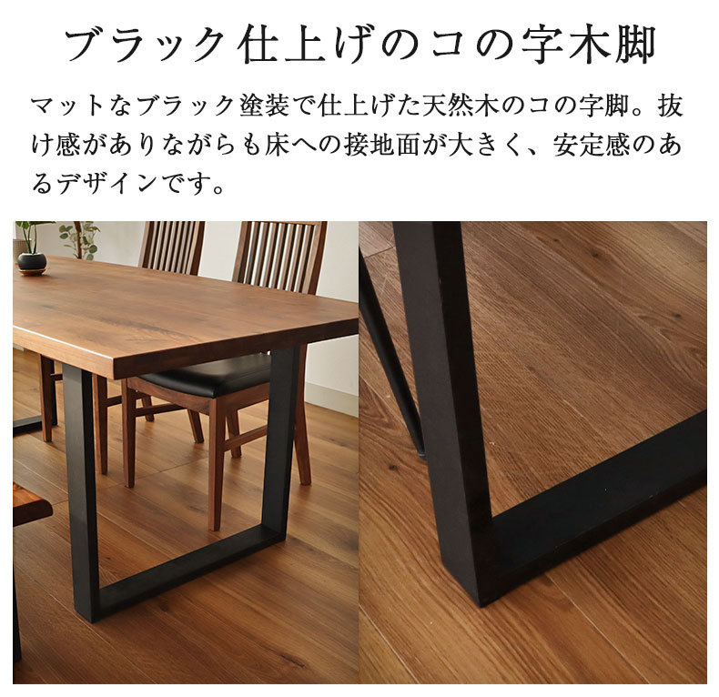 ブラックに仕上げたモダンなコの字脚。床への接地面が大きく、より安定感もあるデザイン。