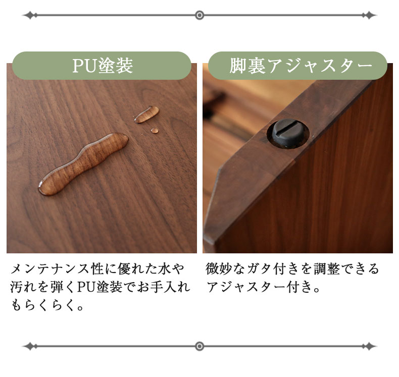 銘木であるウォールナット無垢材を贅沢に使用しました