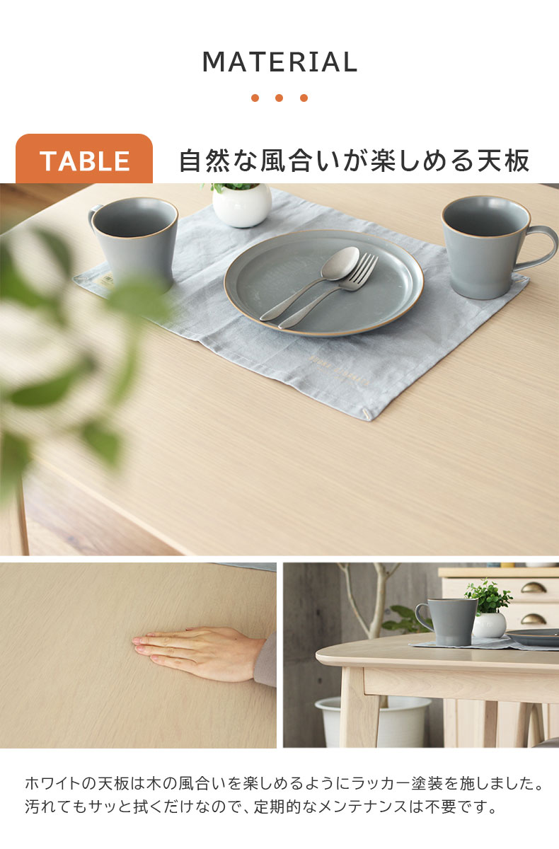 ホワイトの天板は木の風合いを楽しめるようにラッカー塗装を施しました。