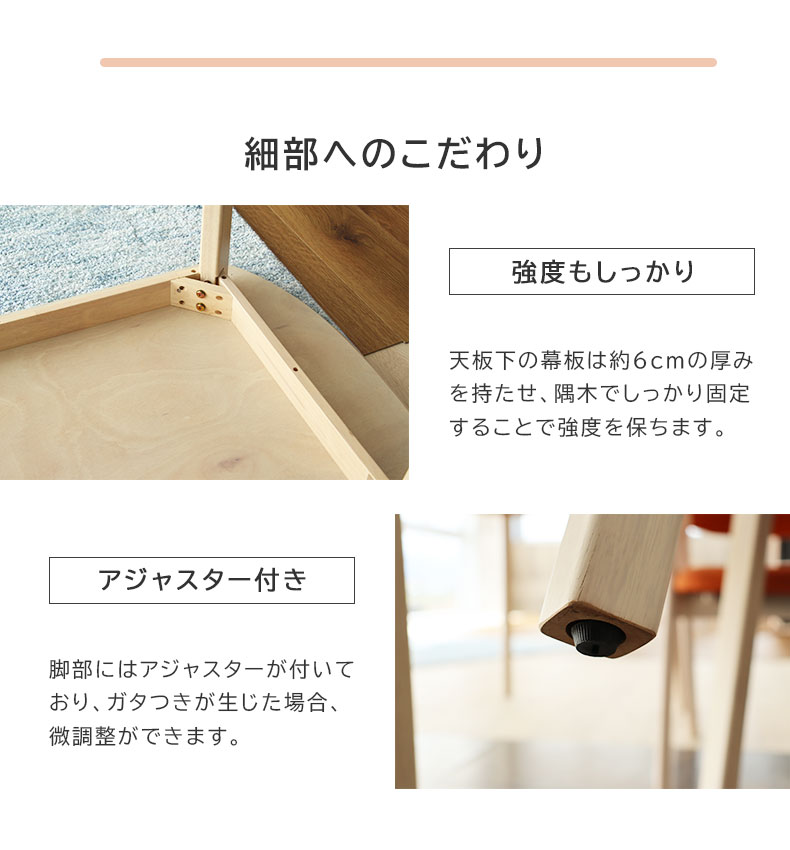 天板下の幕板は約6cmの厚みを持たせ、