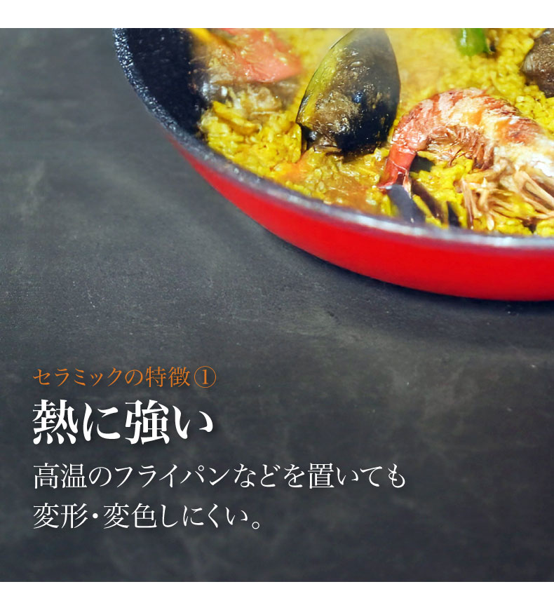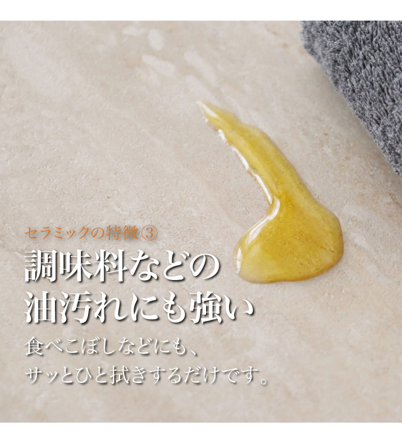 耐久性・耐熱性に優れ、キズや汚れがつきにくい。