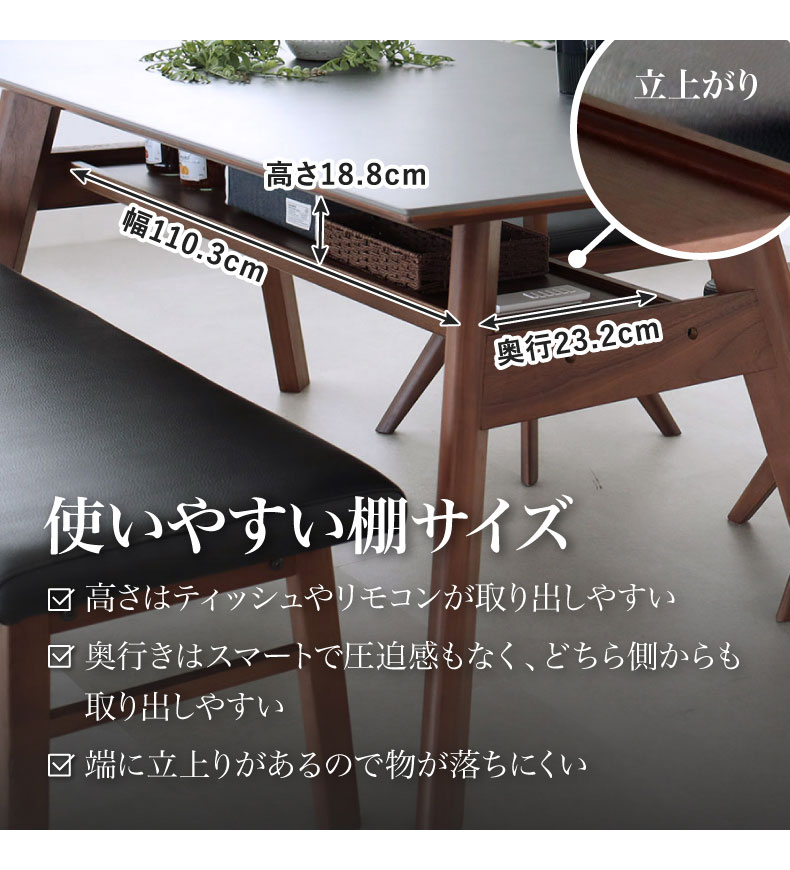 天板下には収納棚付き。