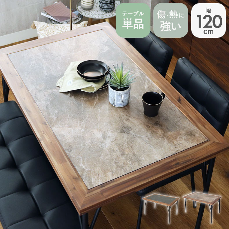 【テーブル】表情豊かなアカシア無垢材xストーン調メラミン。