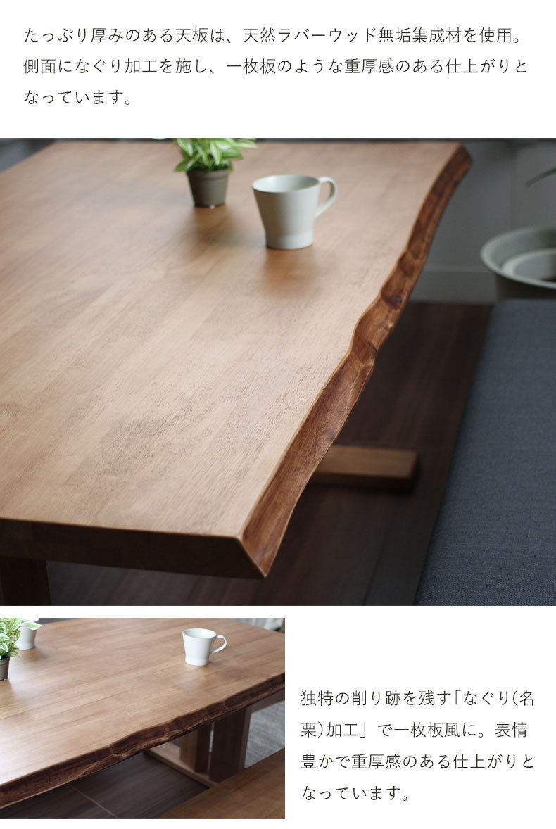たっぷり厚みのある天板は、側面になぐり加工を施し