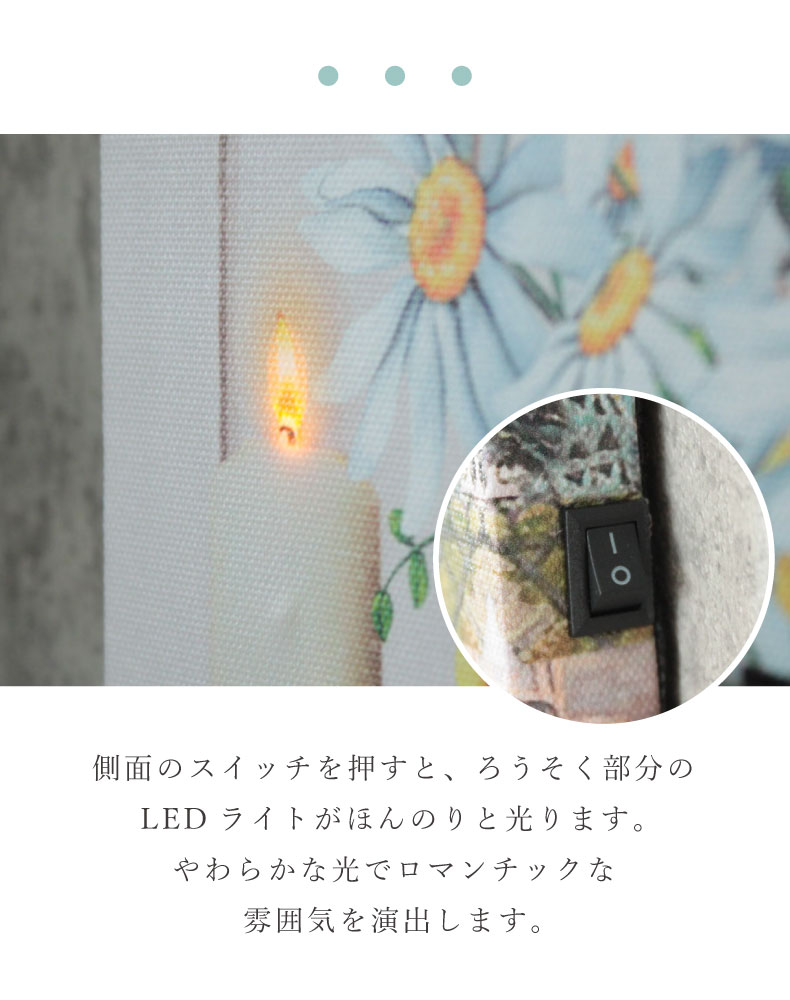 側面のスイッチを押すと、ろうそく部分のLEDライトがほんのりと光ります。