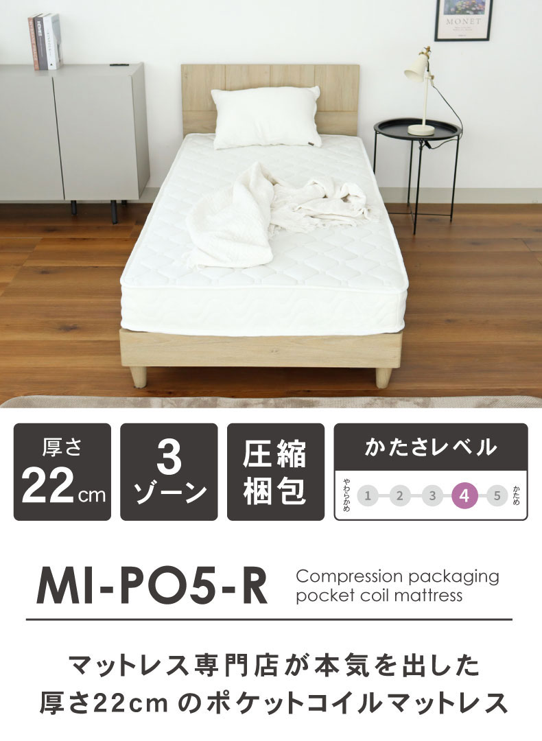 マットレス専門店の厚さ22cmのポケットコイルマットレス。