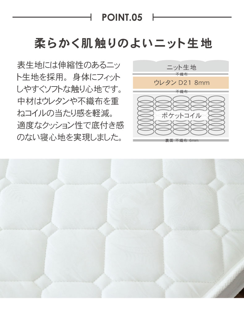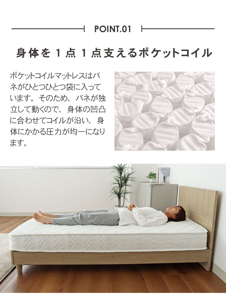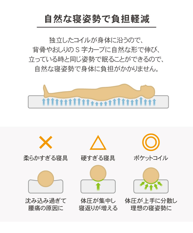 身体を1点1点支えるポケットコイル。