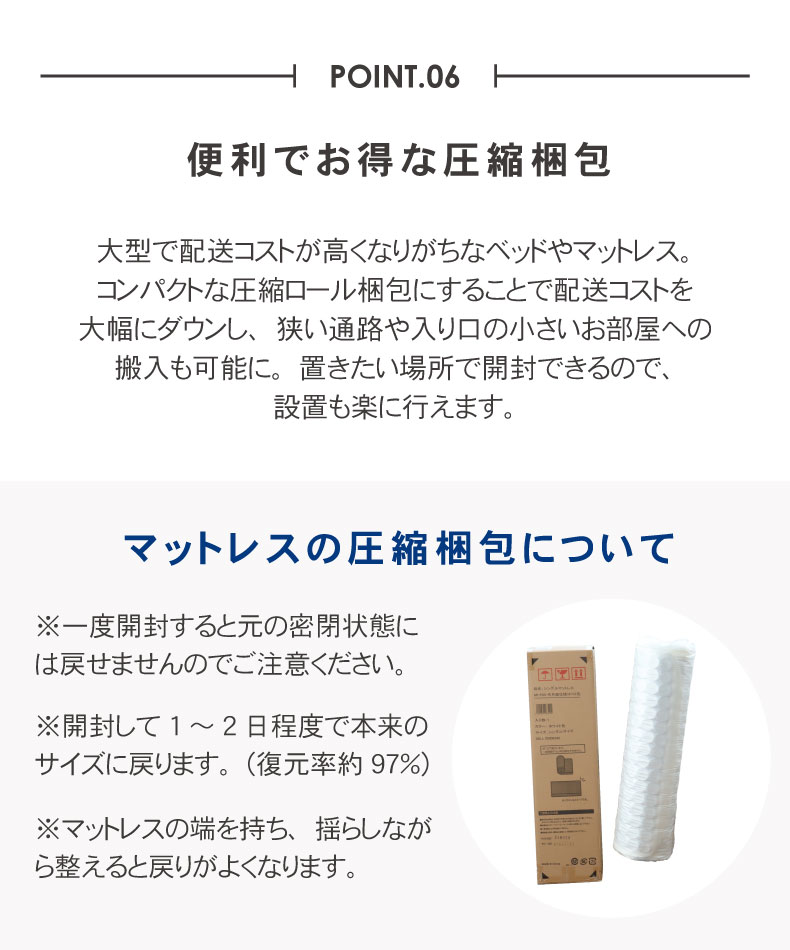 コンパクトな圧縮ロール梱包にすることで配送コストを大幅にダウン。