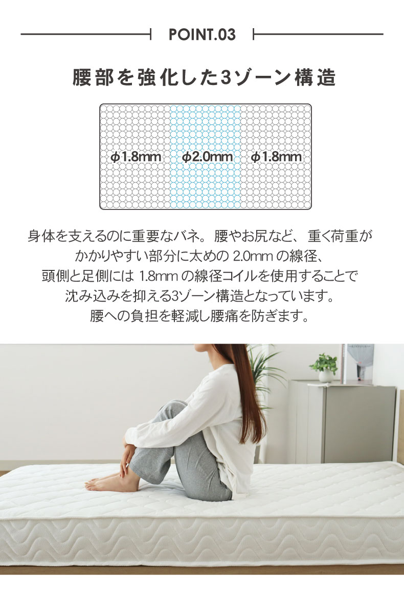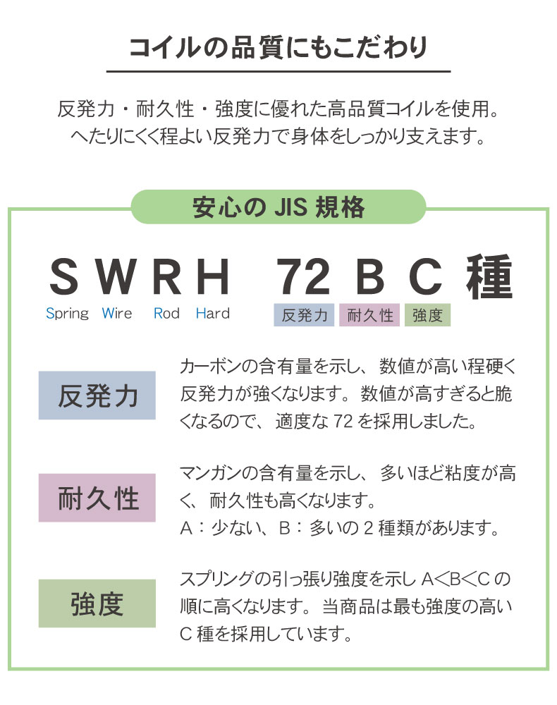 反発力・耐久性・強度に優れた高品質コイルを使用。