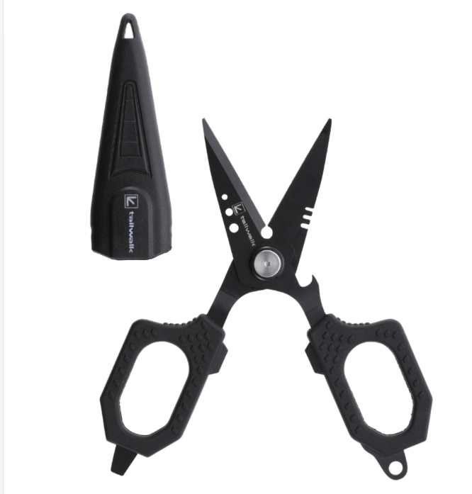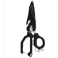 切れ味の鋭いステンレス素材の多機能シザース。さびにくく安全面にも配慮したセーフティーキャップ搭載