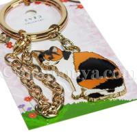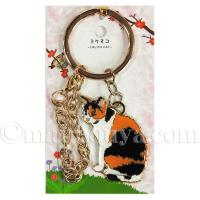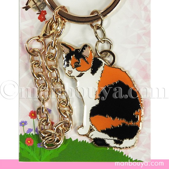 ねこの雑貨。かわいいミケネコのチャームがついたキーホルダー。