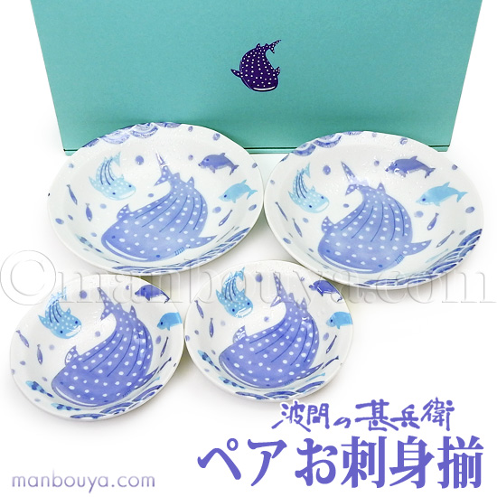 ジンベエザメ グッズ 皿 和食器 ギフトセット おしゃれ 美濃焼 水族館お土産 波間の甚兵衛 ペアお刺身揃 直径11.5cm 17cm