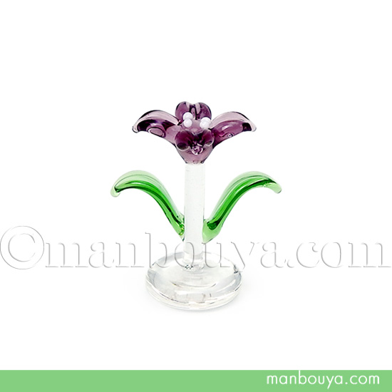 紫の花、あやめのミニチュアガラス細工。