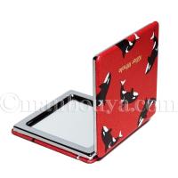 赤に黒いシャチがおしゃれな折り畳み携帯用の手鏡。