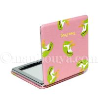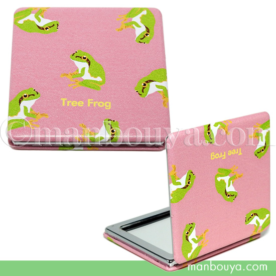 カエル グッズ コンパクトミラー 四角 拡大鏡 ワールド商事 携帯用ミラー アマガエル ピンク メール便発送可