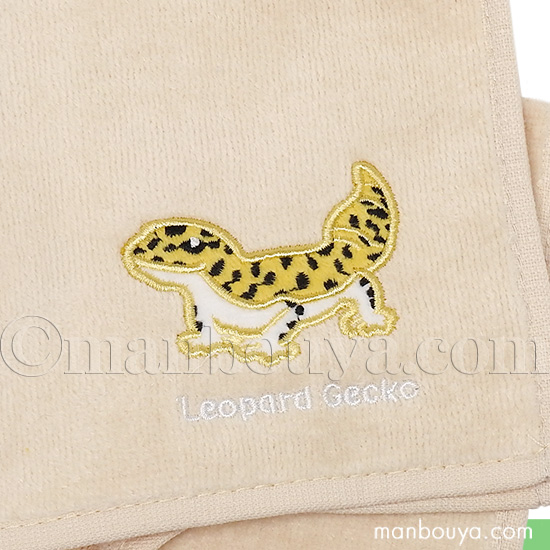 ペットとしても人気のあるレオパードゲッコーデザインのタオルハンカチ。