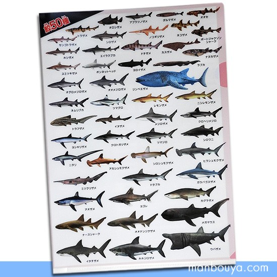 大きなジンベエザメから深海サメまで。色々なサメがいっぱいのA4サイズのクリアファイル。