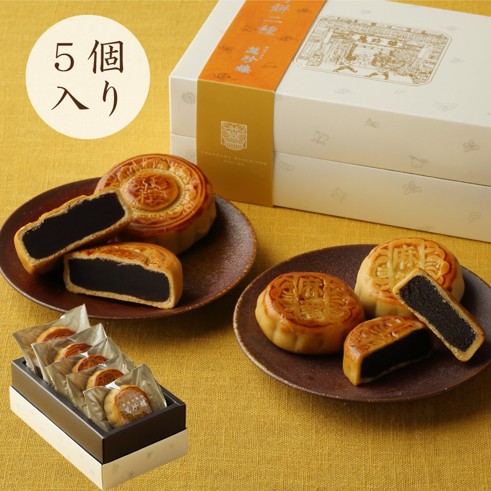 月餅二種 (豆沙・黒胡麻) 5個入 【横浜中華街・萬珍樓】ちょっとした横浜土産に最適 お土産 手土産 日持ち 帰省土産 お取り寄せ 内祝い 中秋節 常温 個包装