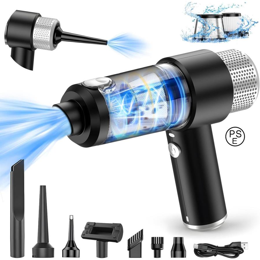 低噪音?策 LED照 4in1電動エアーポンプ機能付き 車載ミニポータブルコードレス掃除機 軽量/業務用/キーボード掃除/車内清掃/家具//家庭用