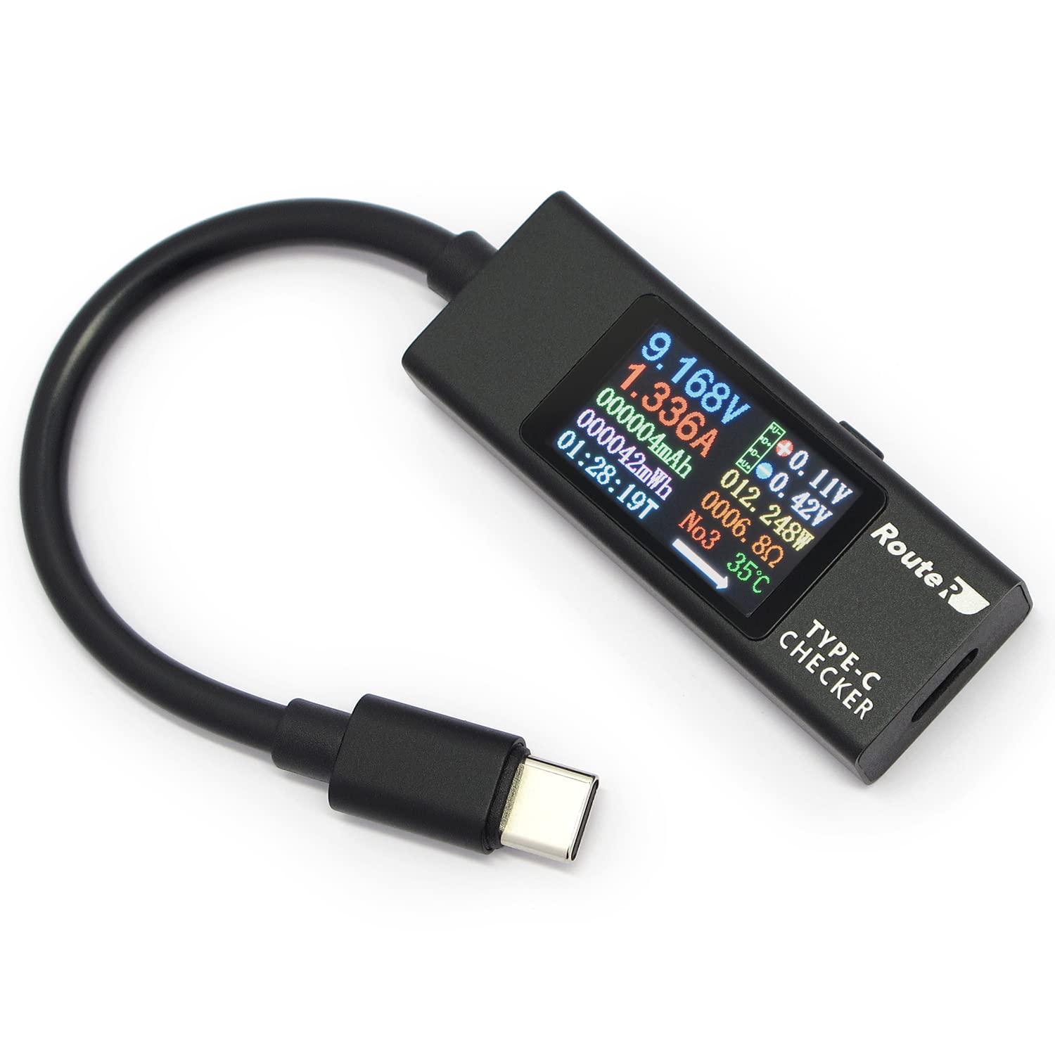 ●Type-C機器の電圧・電流・通電方向・通電時間・ワット・積算電流・内部温度を簡単にチェックできる装置です。 <BR>●Type-Cオス・メスどちらにも電源(ホスト)の接続が可能な双方向入力と通電方向表示に対応しています。 <BR>●堅牢制の高いメタル筐体を採用。 <BR>●30分刻みで設定可能な出力OFFタイマー機能を新たに搭載。 (最大設定時間24時間) <BR>●前モデル(RT-TC5VABK)より画面が大きく見やすくなりました。 <BR>●本体のボタンを素早く二度押すと、画面の表示モードを切り替