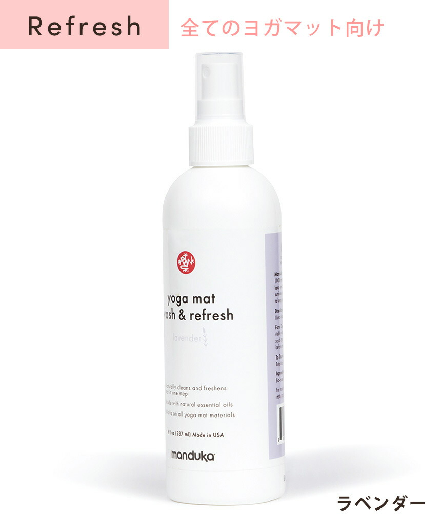 | 商品特徴についてオーガニック認証を受けた天然成分100% Manduka以外のヨガマットにも使用可能 リフレッシュ効果もあるアロマの香りを配合 リサイクルプラスチックを使用したサスティナブルボトル |