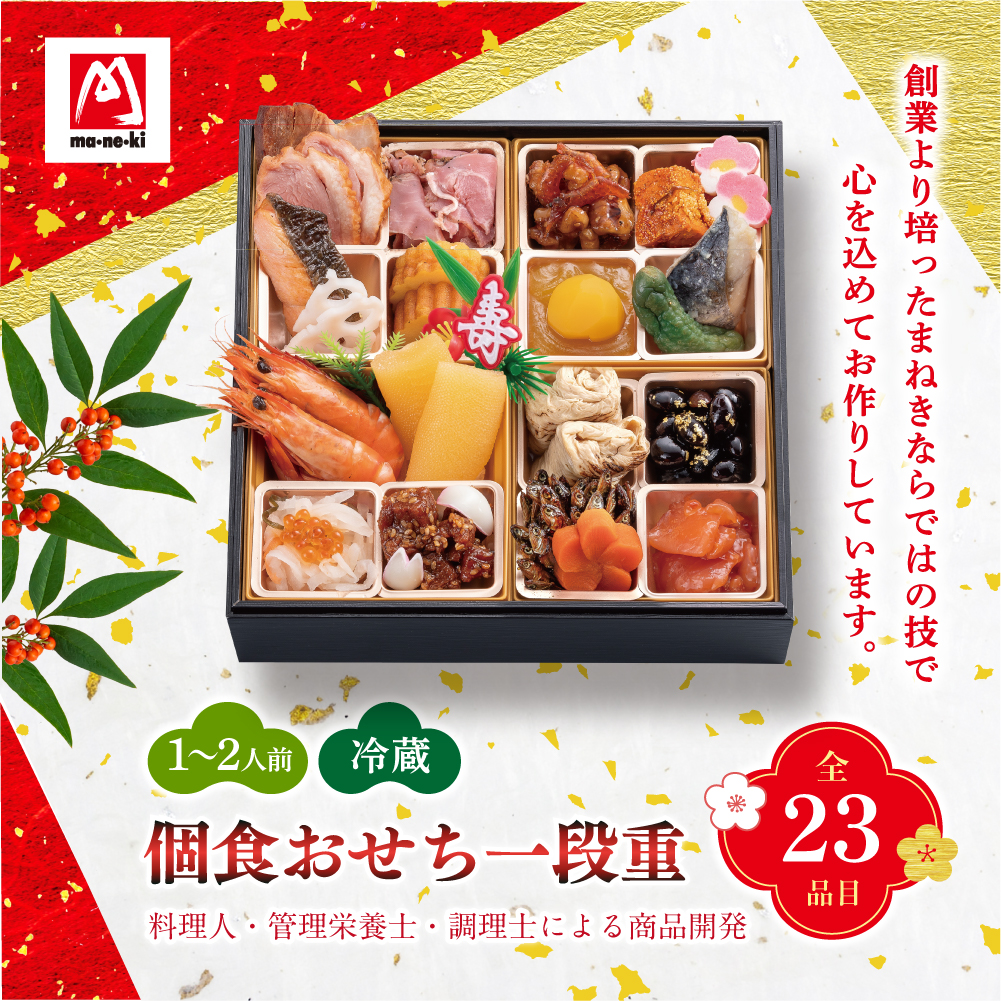 【冷蔵・送料無料】個食おせち一段重|23品目入り|12月31日お届け|1〜2人前