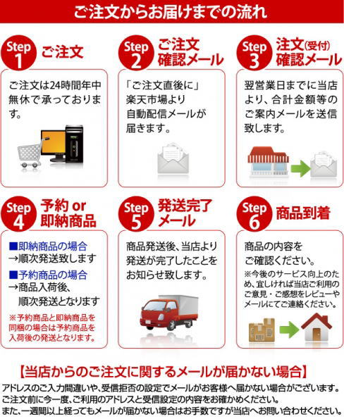 セール期間中は、多くのご注文が集中することが予想されております。スタッフ一同、ご注文の発送業務に全力を尽くしますが遅れがでますことをあらかじめご了承ください。