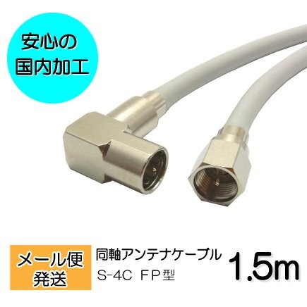 L字型 TVアンテナケーブル 1.5m BS/CS/地上デジタル/4K/8K放送対応 同軸 両端接栓付き(片側L字プッシュ式)S4-PL-FP-1.5m