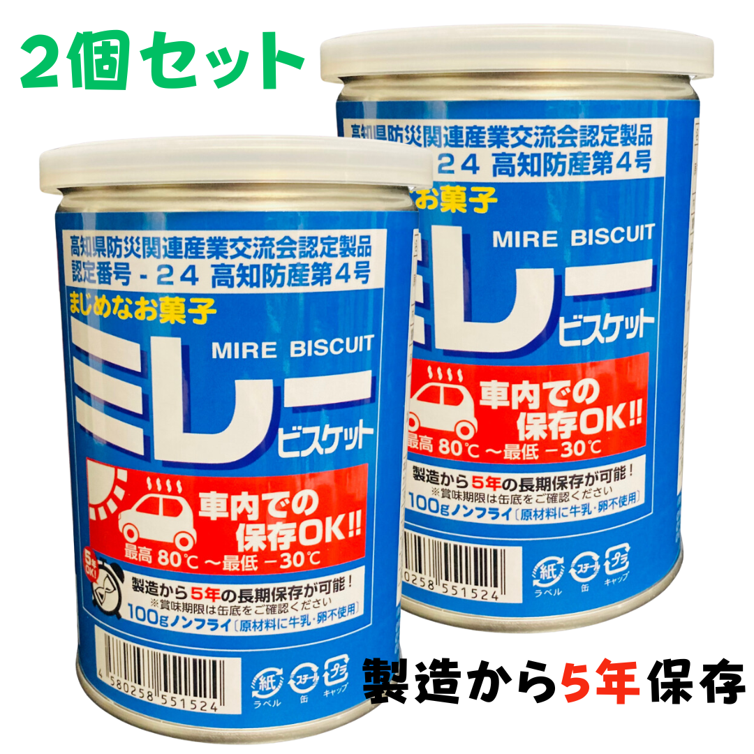 ミレービスケット 車載 100g 2個 車載用 高知 防災食 5年保存 非常食 5年 保存缶 お菓子 車内 災害用 災害グッズ