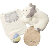セット内容 : 授乳スタイ・汗とりパット・ボール・ピロー(ゴムバンド付)(約19×27×5.5cm)・竹籠(24.5×32×8cm)×各1