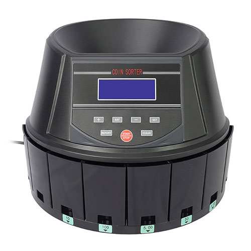 大量の小銭を一度に選別、自動で計算する電動オートコインカウンターです。