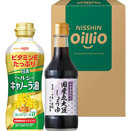 ヘルシーオイルとしょう油の低価格帯調味料ギフトです。慶弔関係や、引っ越し業者様、ノベルティ関係など、様々なシーンにおすすめの詰め合わせです。