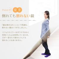 5mm厚のガラス鏡の約1/6と軽量です。市販のフックで簡単に壁に吊下げられます。女性や高齢の方でも手軽に部屋から部屋へ移動が出来ます。硝子ではなくフィルムですので落下したり衝撃を受けても割れたり飛散したりしないので安全です。厚みで映像がダブってしまうガラス鏡に比べ極薄(0.025mm)のフィルムで像を反射するのでゴーストが無く鮮明にくっきりと映し出します。高透明なフィルムを使用していますので肌の色が自然に映ります。反射率が83%と高く鮮明に映し出します。
