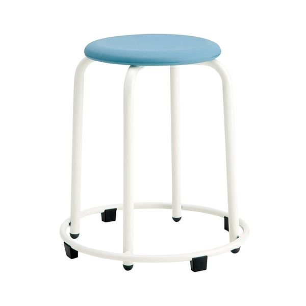 ステップがついた丸スツール/座面高420mm/ブルー。ステップ付きで低学年から高学年まで使用できます。リングには樹脂パーツがついているので誤ってふんでも手前に倒れにくい構造です。