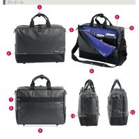 前面に2種類の生地を使用したコンビネーションデザイン。高撥水、軽量の多機能2wayビジネスバッグ。多数の収納ポケットで小物を整理でき、システマチックに使いこなせます。B4サイズ対応。背面にはトローリーバッグに取り付けられるセットアップ用ベルト付き。