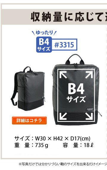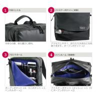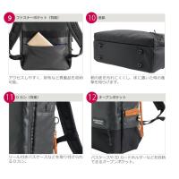 高耐水生地を採用し、2種類の生地によるコンビネーションデザインデザイン。小物の収納に便利なポケットが充実。チェストベルトの取り外しができ、ショルダーベルトへの取り付け位置を3段階で調整できます。背面にはトローリーバッグに取り付けられるセットアップ用ベルト付き。A4サイズ対応。軽量樹脂フレーム内蔵で、型崩れしにくく、自立しやすい。