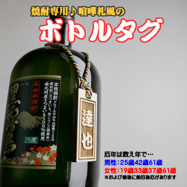 お洒落でカッコイイ喧嘩札風のボトルタグ 厄除け紐or革紐 木製 名札 木札
