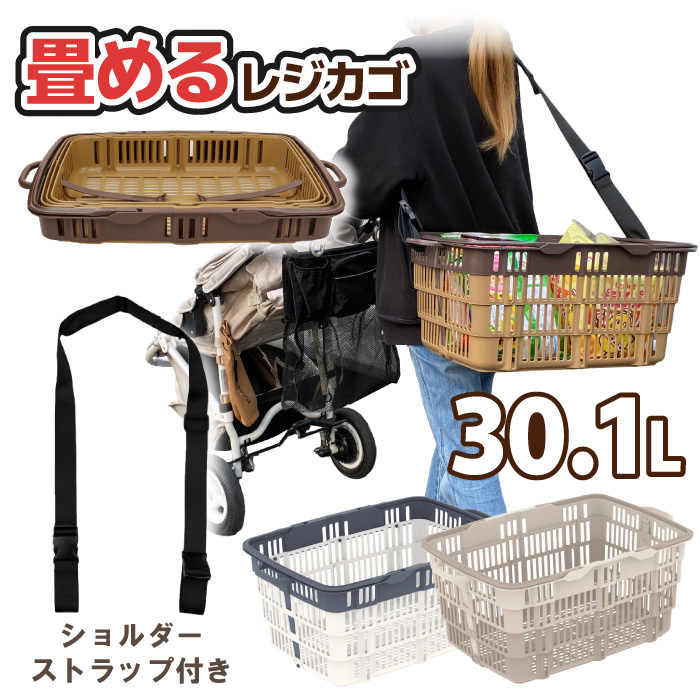 三甲 サンコー ストラップ付き買い物かご マイかご 買い物 便利グッズ レジかご たためる 肩掛け ショルダーかご マイかご 収納かご 買い物かご