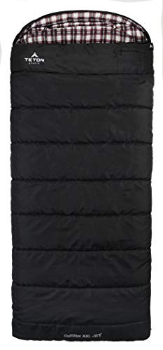 | EXTRA LARGE SLEEPING BAG: Warm, water-resistant canvas sleeping bag is 17 inches longer and 3 inches wider than most sleeping bags; Size 92x39 inches (234x99 cm); Pack weight 20 pounds (9.1 kg) with storage bagHIGH-QUALITY MATERIALS: Durable zipper, water-resistant canvas shell, 100 percent cotton flannel lining is removable for easy cleaning, drawstring hood, inside pocket; Includes storage duffle bag for easy storage and transportADDED COMFORT: Double-layer construction increases warmth and durability; Full-length zipper baffle and adjustable shoulder baffles block out drafts; Half-circle hood keeps head off ground, camp pad, or cot surfaceMUST HAVE COLD WEATHER CAMPING EQUIPMENT: Survival rated for cold temperatures--rated at -35 degrees for camping in cold to frozen conditions; Our lowest rated bag can go with you anywhereLIMITED LIFETIME WARRANTY: TETON Sports' AMAZING customer service team is one YOU CAN COUNT ON to get your products taken care of and get you back OUTDOORS; #getoutdoors with TETON Sports |